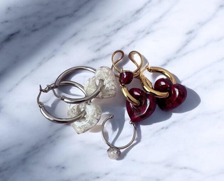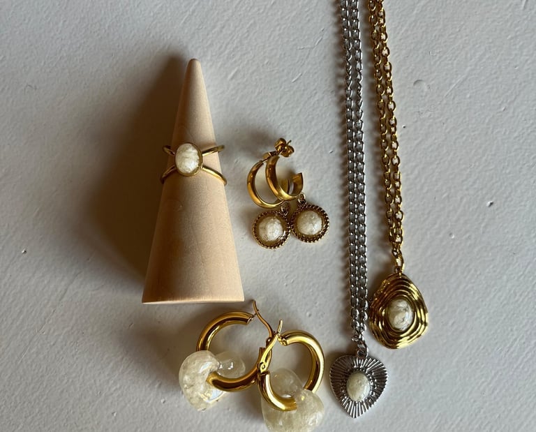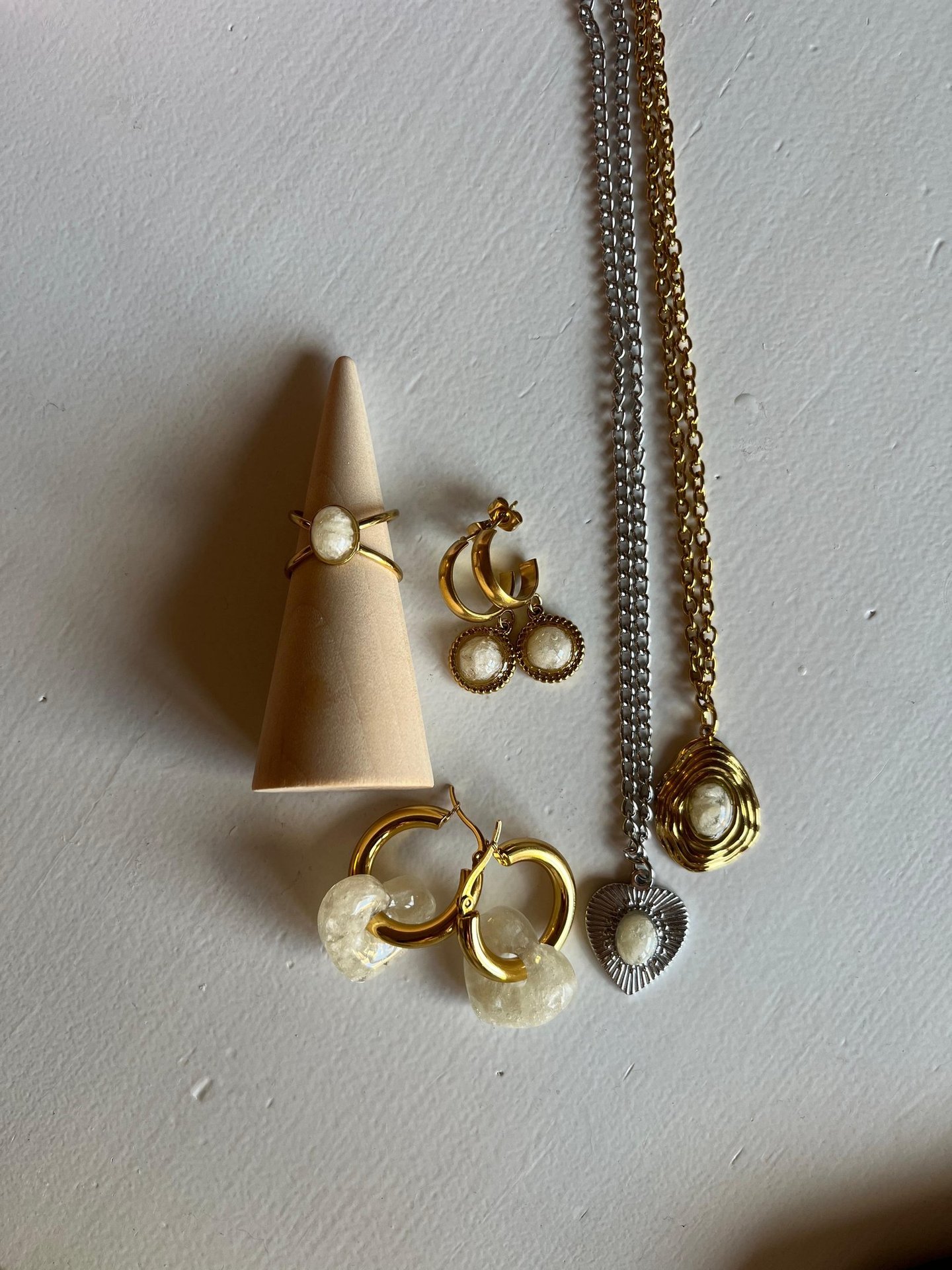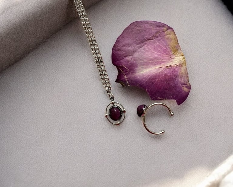 Cuéntame que pieza quieres: pendientes, collares o anillos, todos en acero inoxidable, resistentes y duraderos. Puedo aconsejarte cual se adapta mejor a tu flor.