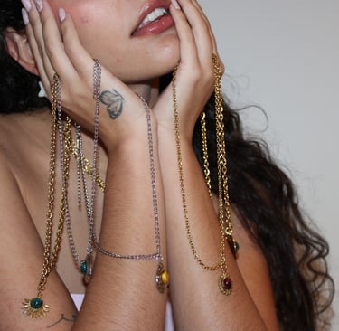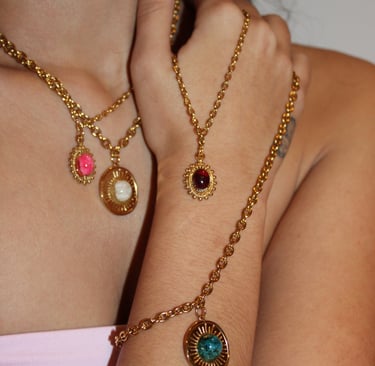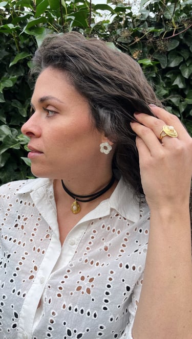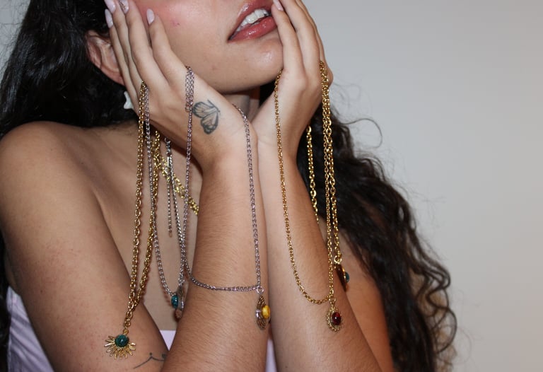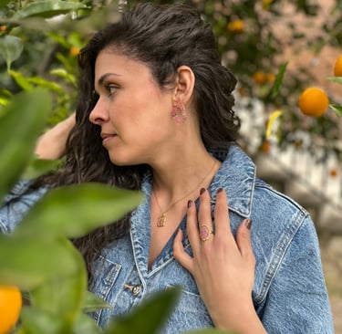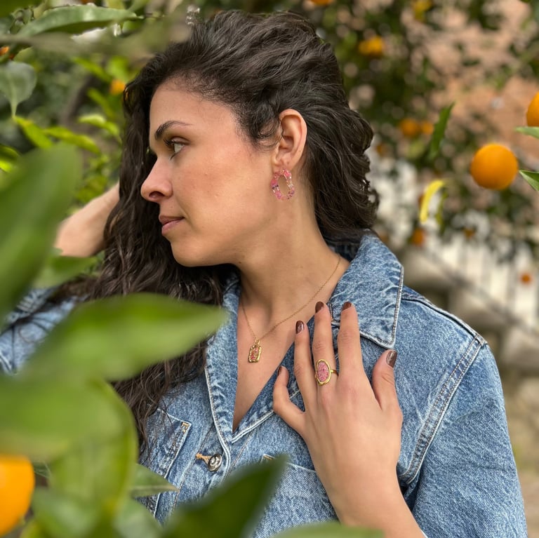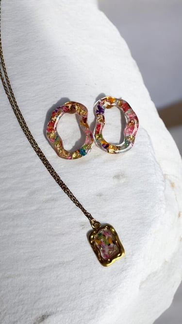 Joyas artesanas hechas de flores encapsuladas.